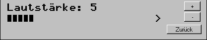 können Sie die Gesprächslautstärke Ihres Gesprächspartners in 8 verschiedenen Stufen regeln. Mit der Schaltfläche "Zurück" im Feld "Gesprächslautstärke" wechseln Sie in das Anrufanzeigenfeld zurück. Der eingestellte Wert bleibt gespeichert.