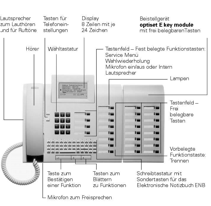 Das Telefon optiset E memory mit Beistellgerät
