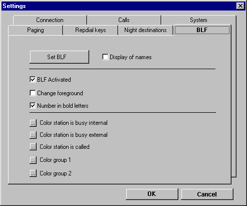 To change these status button colors, select Settings from the File menu, and then the BLF tab. From there, you can also select whether the background color or only the color of the status button label should be changed.