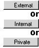 Click one of the buttons "External", "Internal" or "Private" with the left mouse button to answer the first call in the adjacent list box.